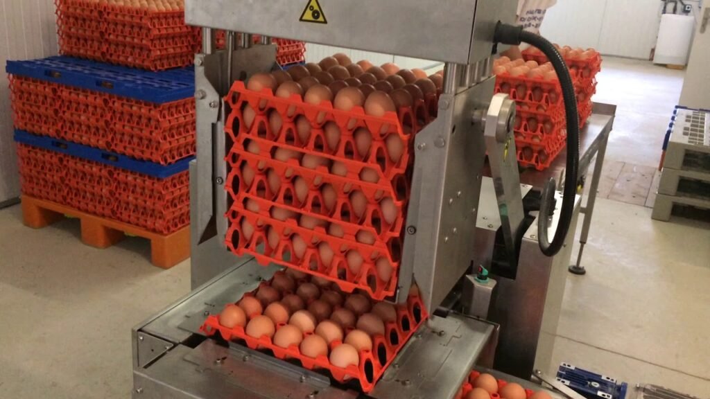 - Empacado de huevos en bandejas o cajas.
